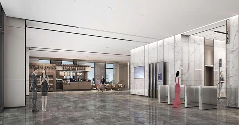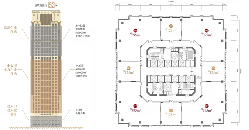富力中心是名企总部基地 聚焦国际视野约6.06万方(建筑面积)5A甲级写字楼,整层约2000㎡(建筑面积)无柱空间。首层5.5米高,双向无柱大堂连通电梯厅和南侧商业裙房,13部高速电梯高效直达。办公空间为全景大平层,4.1米层高空间敞阔。办公环境优越,成为名企进驻的热选。