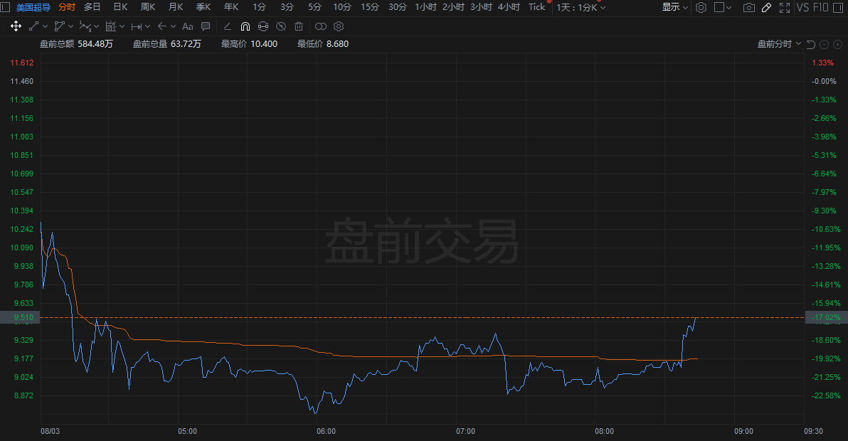 当天,美股美国超导公司股价暴涨60%。但之后,随着越来越多业内人士的质疑,市场对LK-99的信心明显下降。截至发稿,美国超导公司盘前暴挫17%,日内跌幅最大达21%,昨日该股已收跌近29%。